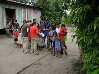 while there we also played with kids and performed dramas and teaching for a church service. But this time it was more challenging becuase none of the kids could understand spanish, when they spoke portuguese we were able to understand them, but their main language wasn´t portuguese but Ticuna. Despite language barriers we were still able to communicate the message of God´s love.... that sounds so corny, but its so true.